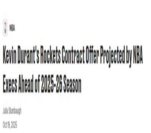 北京時(shí)間10月19日,據(jù)NBA名記Stein報(bào)道,杜蘭特“越來(lái)越有可能”從火箭隊(duì)得到一份續(xù)約報(bào)價(jià)低于2年1.2億美元頂薪的合同。Stein稱,多位薪資專家表示,火箭隊(duì)給杜蘭特的報(bào)價(jià)至少應(yīng)比頂薪總額少4000萬(wàn)美元。