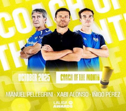 北京時(shí)間10月22日,西甲官方公布了10月最佳主帥的候選名單,其中皇馬主帥哈維-阿隆索、貝蒂斯主帥佩萊格里尼、巴列卡諾主帥伊尼戈-佩雷斯在列。