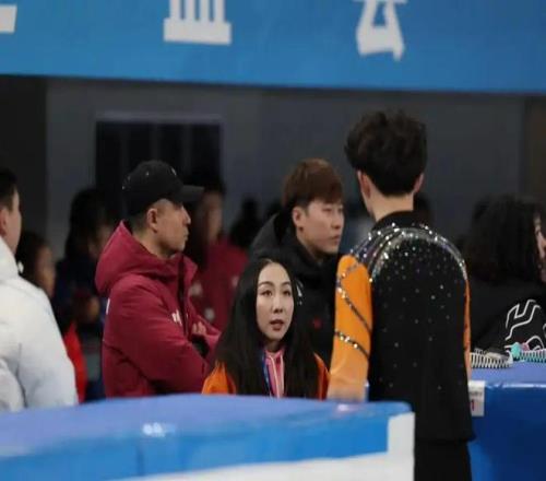 隋文靜以輔助教練身份在花滑比賽現(xiàn)場(chǎng)(圖源:新京報(bào))