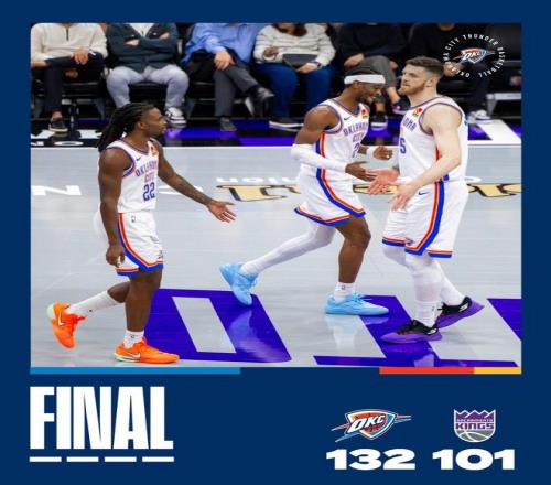 第4節(jié),米切爾連續(xù)送出助攻,OKC依靠著團(tuán)隊作戰(zhàn),得以將分差擴(kuò)大至34分,比賽早早失去了懸念。薩克拉門托追分乏力,最終,雷霆以132比101完勝對手。