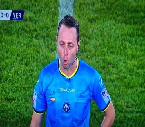 比賽臨近尾聲,主裁阿比索判罰維羅納37號(hào)球員貝拉-科沙在本方禁區(qū)對(duì)萊切前鋒卡馬爾達(dá)犯規(guī),在經(jīng)過VAR回看后,阿比索向全場(chǎng)觀眾宣布判罰時(shí)出現(xiàn)了口誤:“經(jīng)VAR回放,烏迪內(nèi)斯37號(hào)球員在禁區(qū)內(nèi)并未犯規(guī)。最終判罰:點(diǎn)球取消。維羅納,對(duì)不起!維羅納,對(duì)不起!”